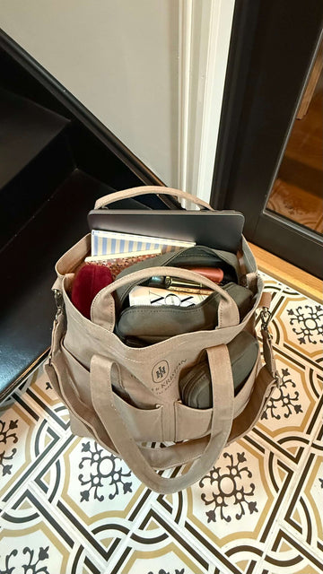 Organizer er en funksjonell og stilren jobbveske som passer perfekt til jobb, studier og pendling. Den rommer laptop, notatbok, ladere og nødvendigheter, og de smarte lommene gir deg full oversikt gjennom hele dagen. Den stabile bunnplaten gjør at vesken står stødig, mens tre bæremåter (håndtak, skulder og crossover) gir komfort uansett hvor du skal. Håndlaget i slitesterk bomullscanvas – en tidløs jobbveske designet i Norge, laget for daglig bruk.