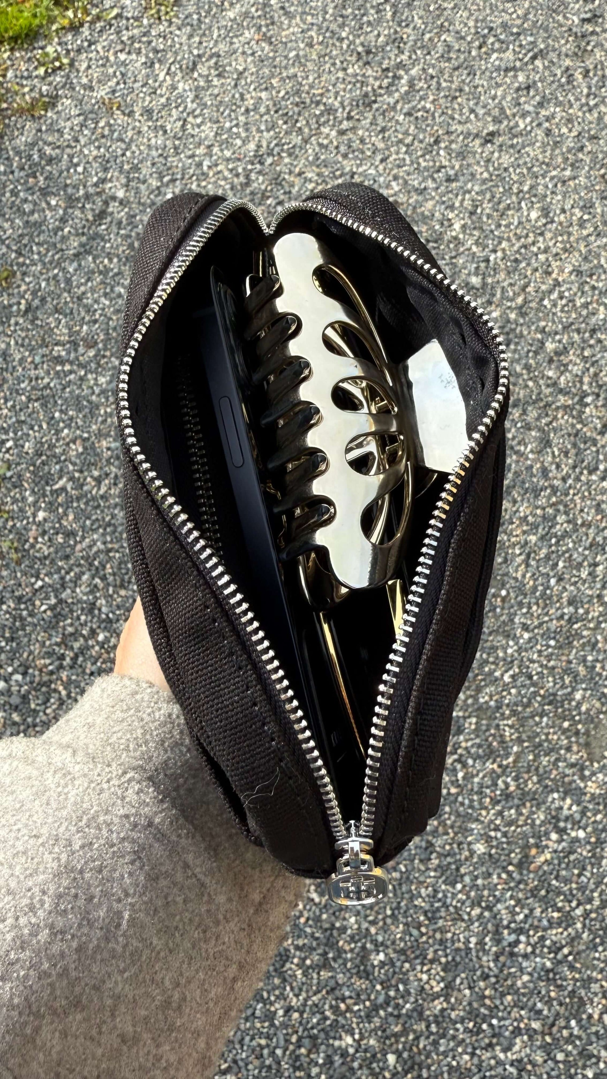 Nipsy is a sleek and classic pouch that gathers all the small items you would otherwise lose track of – such as lip gloss, hair ties, clips, comb, keys, wallet, wireless earbuds, or hygiene products.